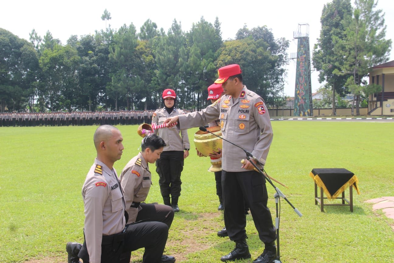 Brigjen Pol Dirin, S.I.K., M.H., Kepala Sekolah Pembentukan Perwira Lemdiklat Polri, secara resmi membuka kegiatan Pembinaan Tradisi (Bintra) bagi calon siswa Sekolah Inspektur Polisi (SIP) Angkatan ke-54 Gelombang I Tahun Anggaran 2025. Acara tersebut berlangsung di Lapangan Soetadi Ronodipuro Setukpa Lemdiklat Polri Kota Sukabumi. 06 Maret 2025.