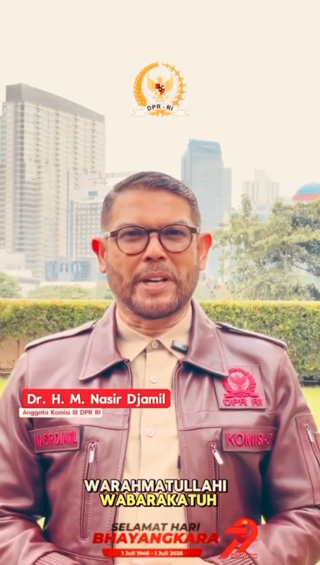 Jakarta — Dalam rangka peringatan Hari Bhayangkara ke-79, anggota Komisi III DPR RI, M. Nasir Jamil, menyampaikan ucapan selamat dan apresiasi kepada seluruh jajaran Kepolisian Republik Indonesia, baik yang masih aktif maupun para purnawirawan, dari Sabang hingga Merauke, dari Miangas hingga Pulau Roti.
