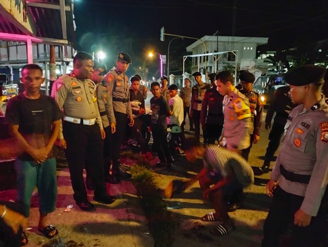 Polres Kepulauan Sula- Kepolisian Resor Sula melalui gabungan Satgas Operasi Mantap Praja 2024 melakukan patroli malam diseputaran Kota Sanana, Jumat (11/10/24).