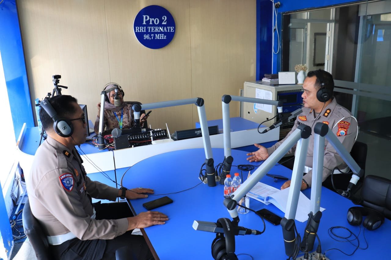 Direktorat Lalu Lintas (Ditlantas) Polda Maluku Utara menggelar talk show di RRI Pro 2 Ternate, Kamis (27/2/2025), membahas rencana rekayasa arus lalu lintas selama bulan Ramadhan.