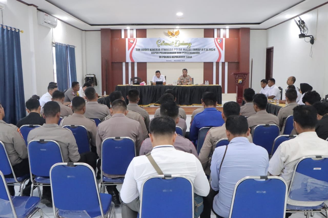 Polres Kepulauan Sula- Bertempat di Aula Polres Sula, telah dilaksanakan kegiatan Audit Kinerja oleh Itwasda Polda Malut Tahap II T.A 2024 tentang Aspek Pelaksanaan dan Pengendalian. Selasa (5/11/24).