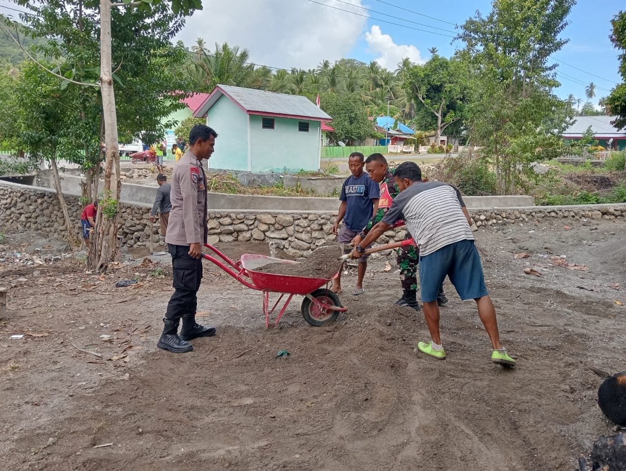 Seperti halnya yang dilakukan oleh Bhabinkamtibmas Desa Waiman Bripka Ulwan Buamona bersama dengan warga binaannya bergotong royong dalam memperbaiki penahan air yang tergerus. Selasa (12/11/24).