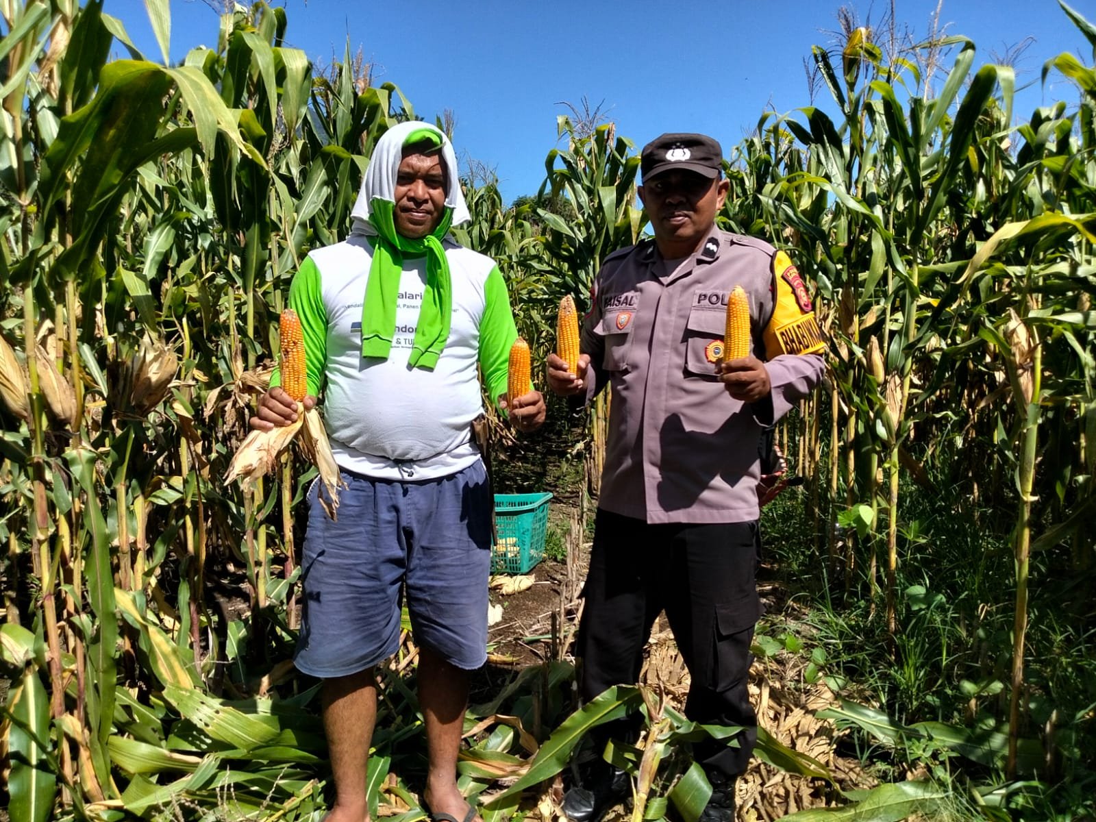 Dalam rangka mendukung program ketahanan pangan yang dicanangkan oleh Presiden Republik Indonesia, Bhabinkamtibmas Desa Porniti, Polsek Jailolo, Aipda Faisal S. Djafar, melaksanakan kegiatan panen perdana jagung kering pada Senin, (27/4) kemarin.