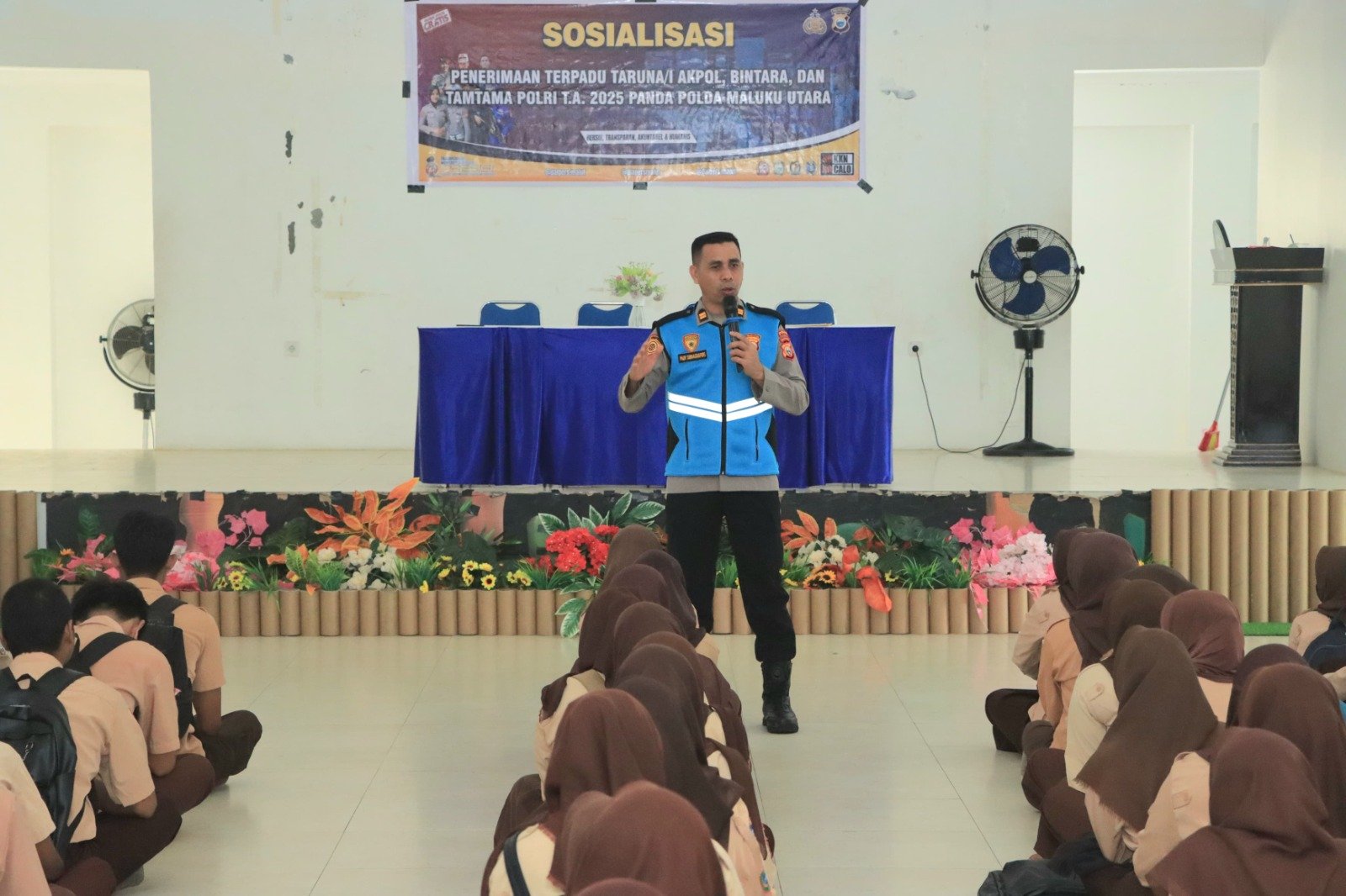 Biro SDM Polda Maluku Utara menyelenggarakan kegiatan sosialisasi Penerimaan Terpadu Anggota Polri Tahun Anggaran 2025 bertempat di SMA Negeri 4 Ternate. Jumat. (21/2).