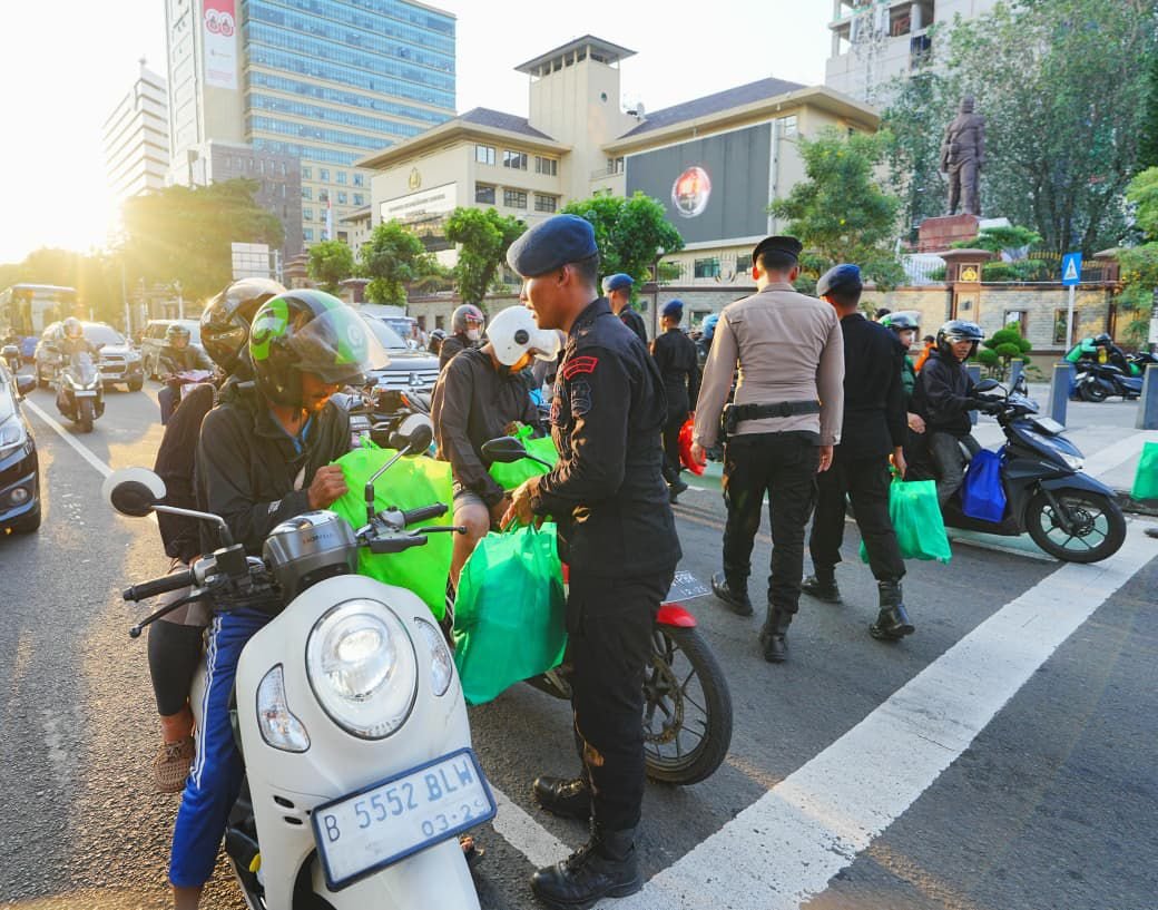 _Jakarta, 04 September 2025_ Dalam upaya mempererat sinergitas antara buruh dan aparat kepolisian, Konfederasi Serikat Pekerja Seluruh Indonesia (KSPSI) bersama Polri menggelar kegiatan bakti sosial dengan membagikan ratusan paket sembako kepada masyarakat yang membutuhkan. Kegiatan ini berlangsung pada Kamis sore di perempatan depan Mabes Polri, Jalan Trunojoyo, Jakarta.