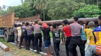 Jaga Sula – Sat Lantas Polres Kepulauan Sula Bantu Mobilisasi Warga Desa Bega Akibat Jalan Rusak Terdampak Banjir