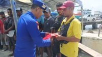 Jaga Sula – Sat Polairud Polres Sula Bagikan Bendera Merah Putih