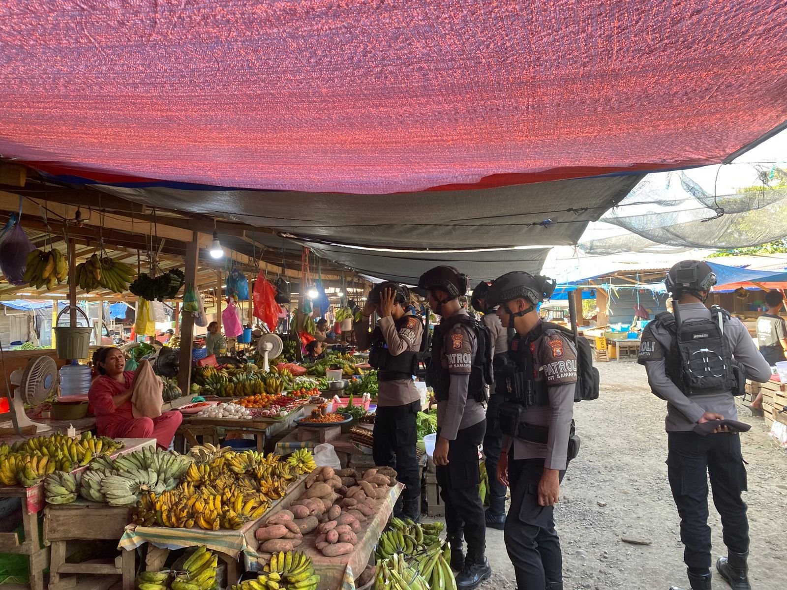 Patroli menyasar area pasar dan sekitarnya yang ramai dikunjungi masyarakat. Personel melakukan pemantauan aktivitas pedagang dan pengunjung, sekaligus memberikan imbauan agar tetap menjaga ketertiban serta tidak melakukan perbuatan yang melanggar hukum.