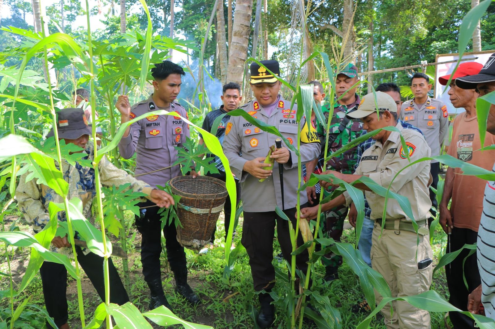 Polres Kepulauan Sula- Dalam rangka mendukung program ketahan pangan, Kapolres Sula AKBP Kodrat Muh Hartanto, S.I.K, hadiri kegiatan panen jagung yang berlangsung di Desa Fatiba Kecamatan Sulabesi Tengah. Senin (17/02/25).