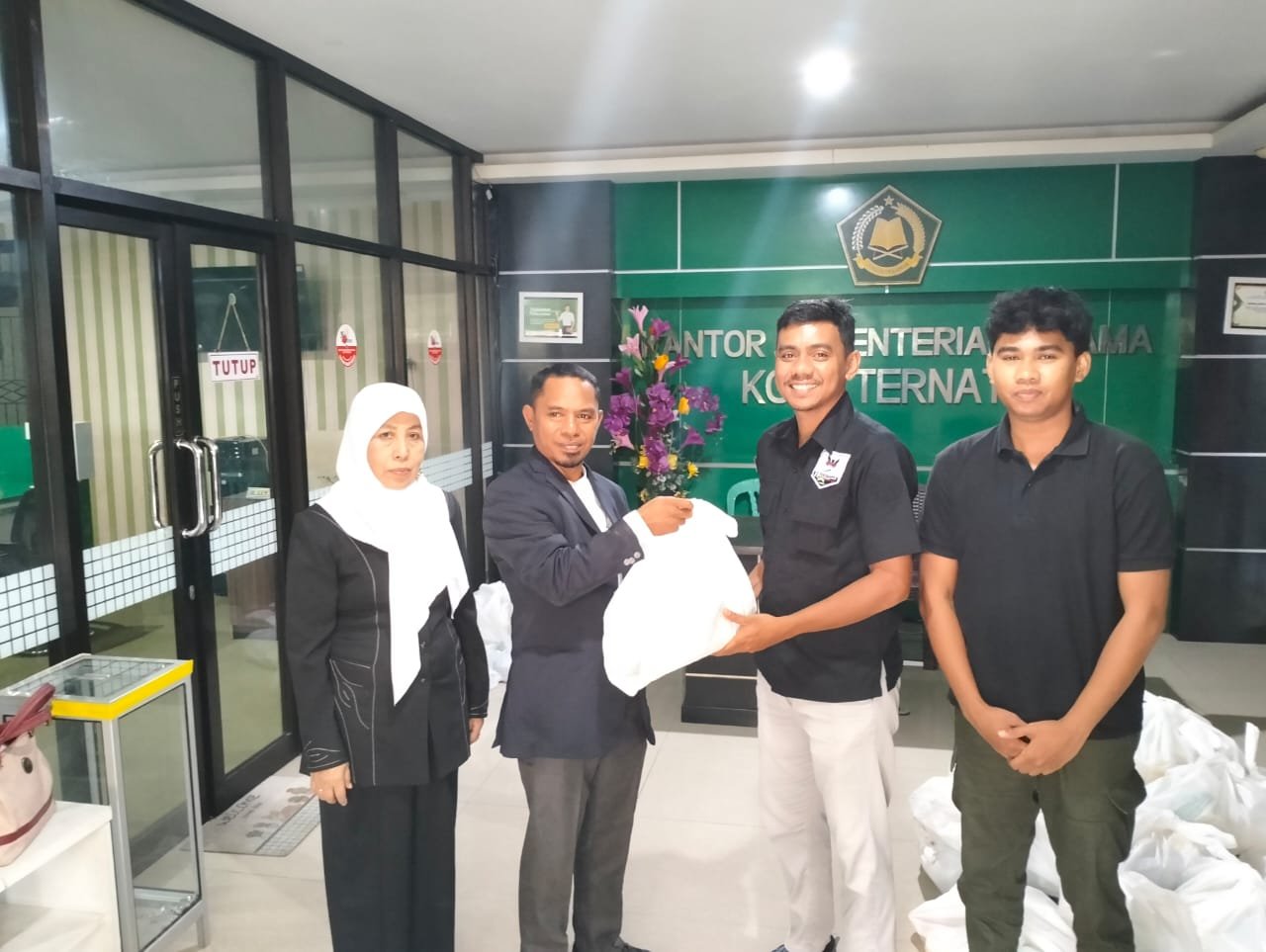 Dalam rangka Hari Ulang Tahun Kementerian Agama (Kemenag) dan Hari Amal Bakti ke-79, Densus 88 Satgaswil Maluku Utara menyalurkan bantuan sosial kepada sejumlah mantan narapidana terorisme (napiter). yang berlangsung di Kantor Kementerian Agama Kota Ternate.