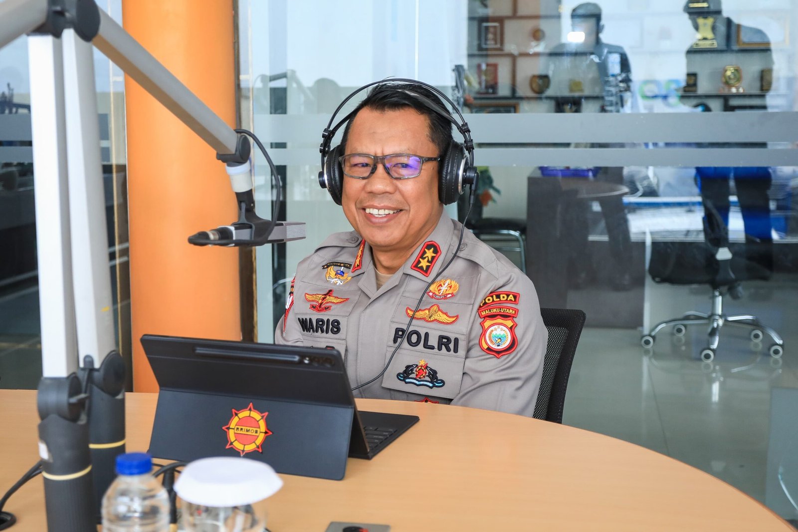 HUMAS POLDA MALUT – Kepala Kepolisian Daerah Maluku Utara, Irjen Pol. Drs. Waris Agono, M.Si., menjadi narasumber dalam dialog interaktif di RRI Ternate, Rabu (12/11/2025). Kegiatan tersebut mengangkat tema “Sinergi Berantas Judi Online, Penyelundupan, dan Narkoba”.