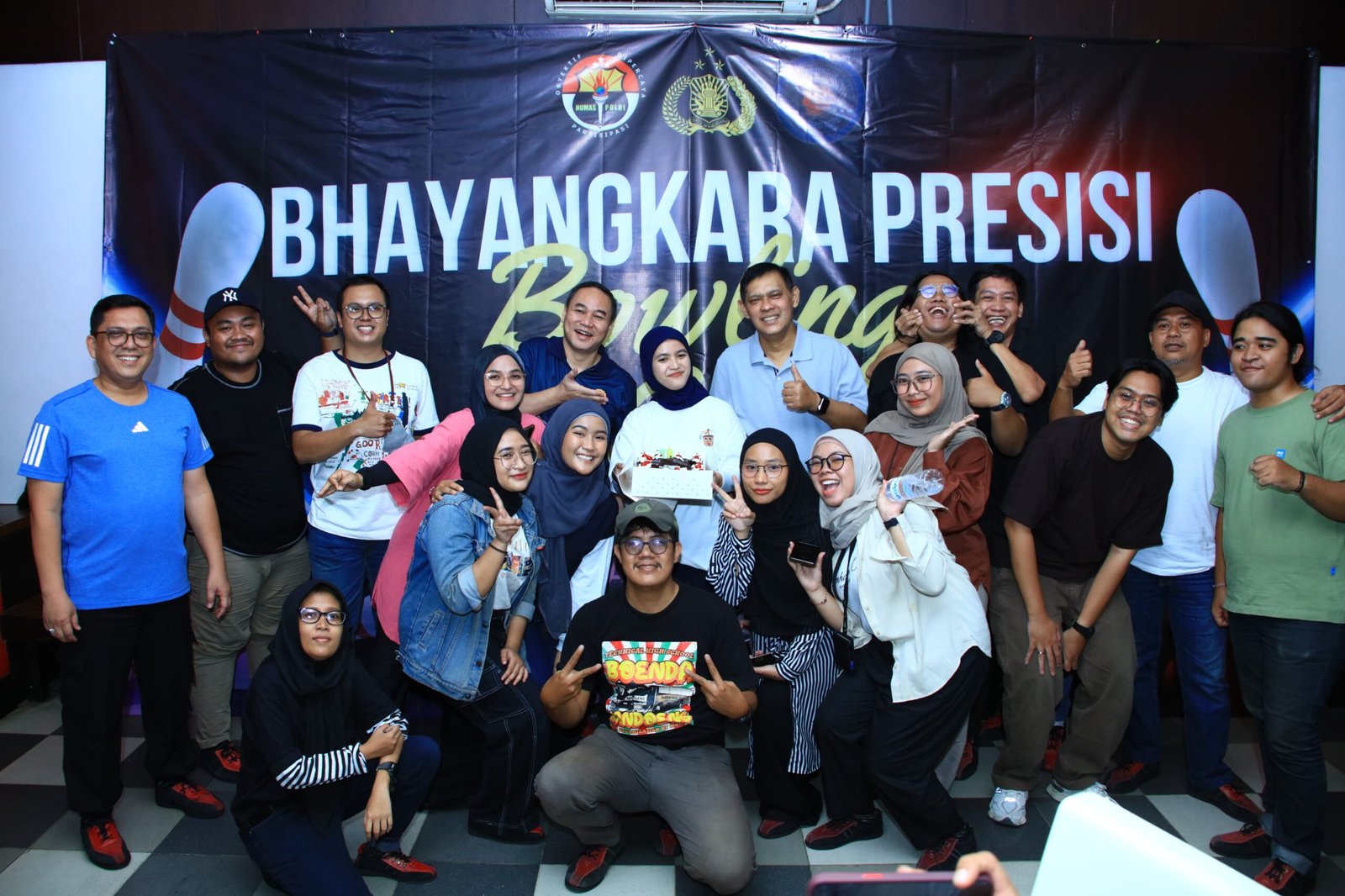 Jakarta. Divisi Humas Polri menggelar Bhayangkara Presisi Bowling Cup bersama rekan media di Plaza Festival, Jakarta Selatan. Penyelenggaraan tersebut digelar dalam rangka Dalam rangka Hari Ulang Tahun (HUT) Bhayangkara ke-78.