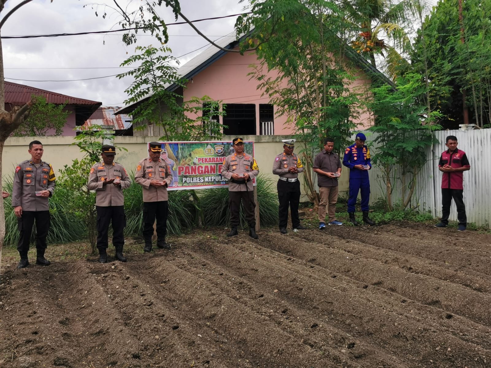 Polres Kepulauan Sula- Dalam rangka mendukung Asta Cita Presiden RI untuk memperkuat ketahanan pangan nasional, Polres Sula melaksanakan kegiatan penanaman bibit jagung memanfaatkan lahan produktif, yang berlangsung di halaman Mako Polres Sula. Kamis (5/12/24).