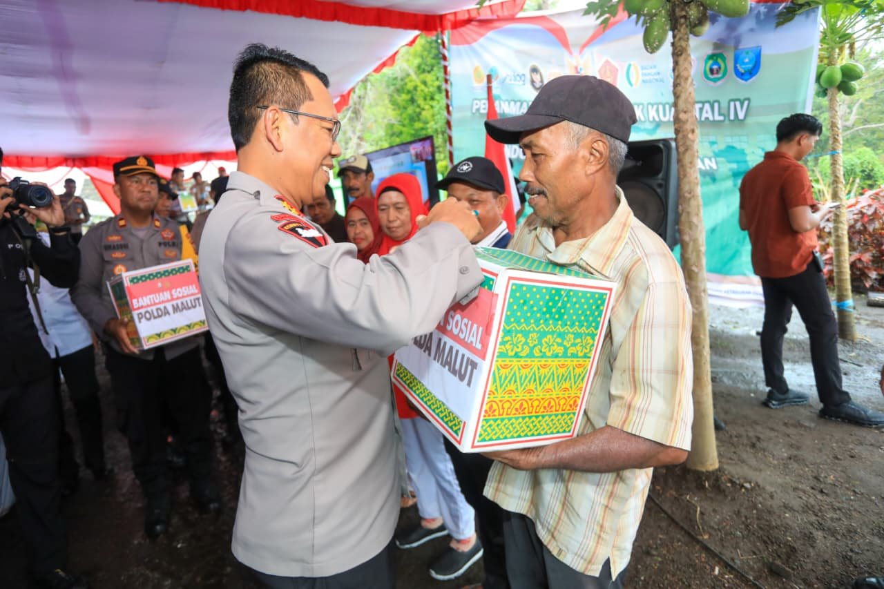 Sementara itu, di Maluku Utara, kegiatan diisi dengan penyerahan bantuan sembako kepada kelompok tani, penanaman jagung secara simbolis oleh Kapolda dan Wakil Gubernur Maluku Utara, serta pelepasan hasil panen ke Perum Bulog.