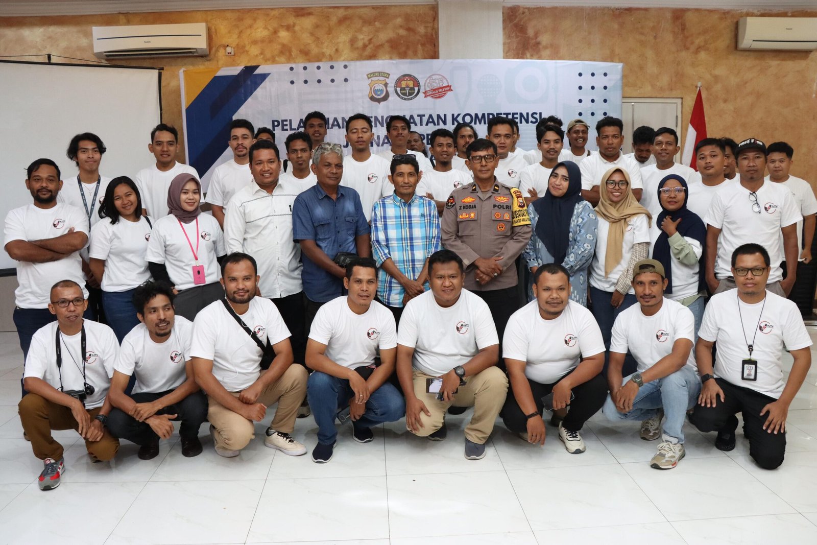 Kepolisian Daerah Maluku Utara melalui Bidhumas berkolaborasi dengan Komunitas Jurnalis Televisi Maluku Utara menggelar kegiatan pelatihan penguatan kompetensi jurnalis pemula wujudkan pemilu damai tahun 2024, yang bertempat di Royal Resto Ternate, Rabu (2/10).