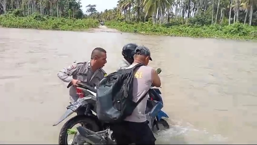 Polres Kepulauan Sula- Musim penghujan yang tengah berlangsung menyebabkan air Kali Kasikil antara Desa Naflo dan Desa Waitina, Kecamatan Mangoli Timur, Kabupaten Kepulauan Sula, mengalami peningkatan debit air. Ketinggian air mencapai lutut orang dewasa, sehingga mengganggu aktivitas sehari-hari masyarakat setempat.