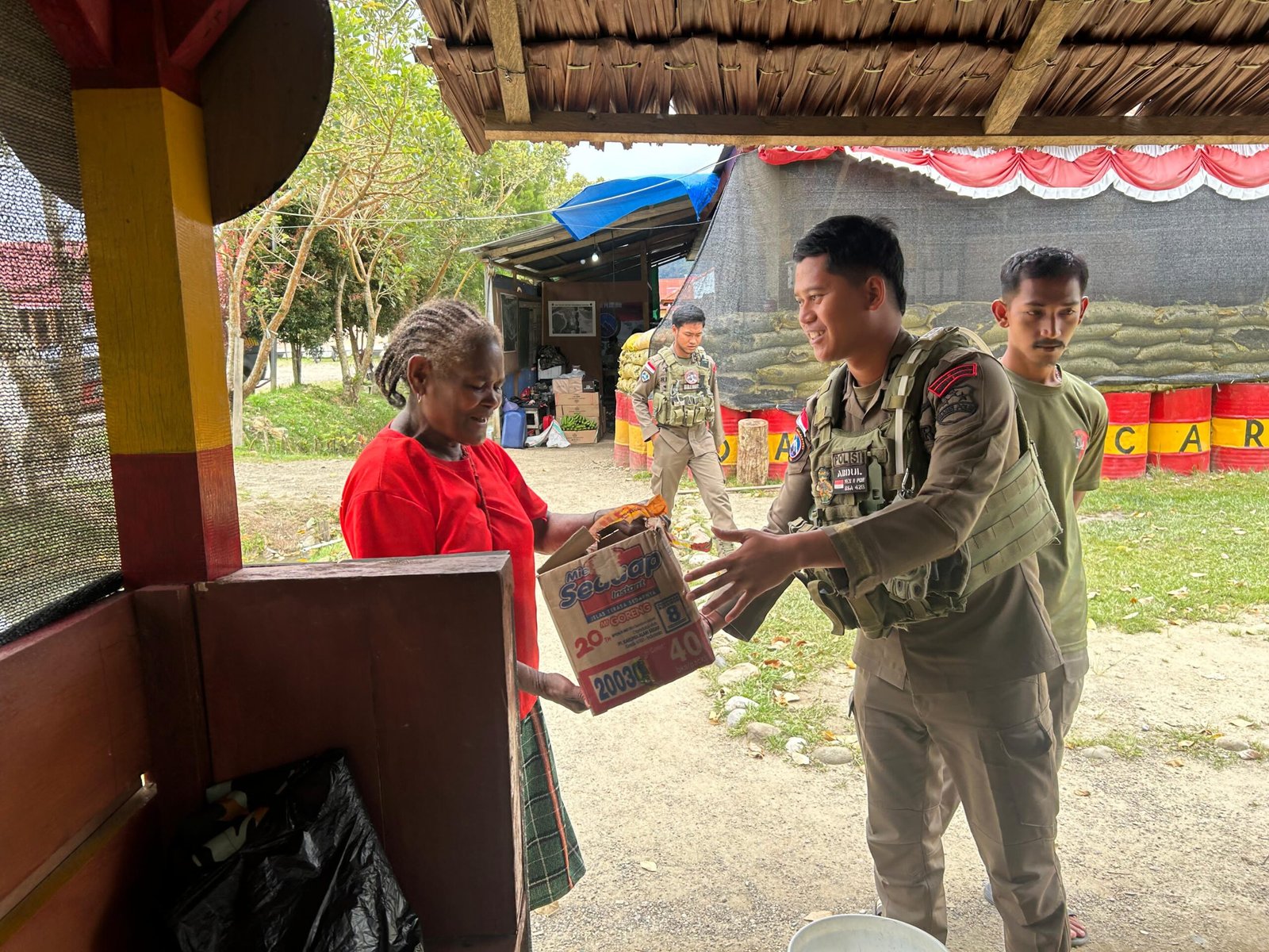 Sebagai bentuk balasan, personel Damai Cartenz 2025 menawarkan sekardus mi instan kepada Mama Elliyah, sebagai wujud perhatian kepada masyarakat yang telah menunjukkan kebaikan hati mereka.