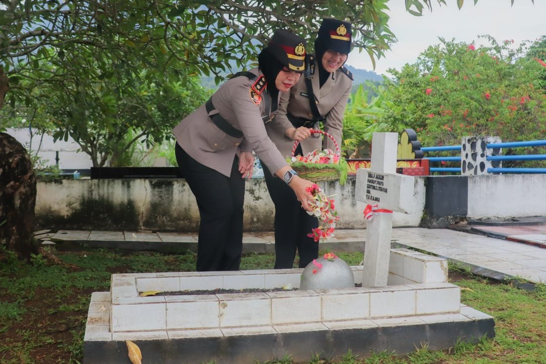 Dalam rangka memperingati Hari Ulang Tahun ke-76 Polisi Wanita (Polwan) tahun 2024, Polwan Polda Maluku Utara melaksanakan kegiatan ziarah dan tabur bunga di Taman Makam Pahlawan (TMP) Banau Kota Ternate, pada Kamis, (22/8/2024).