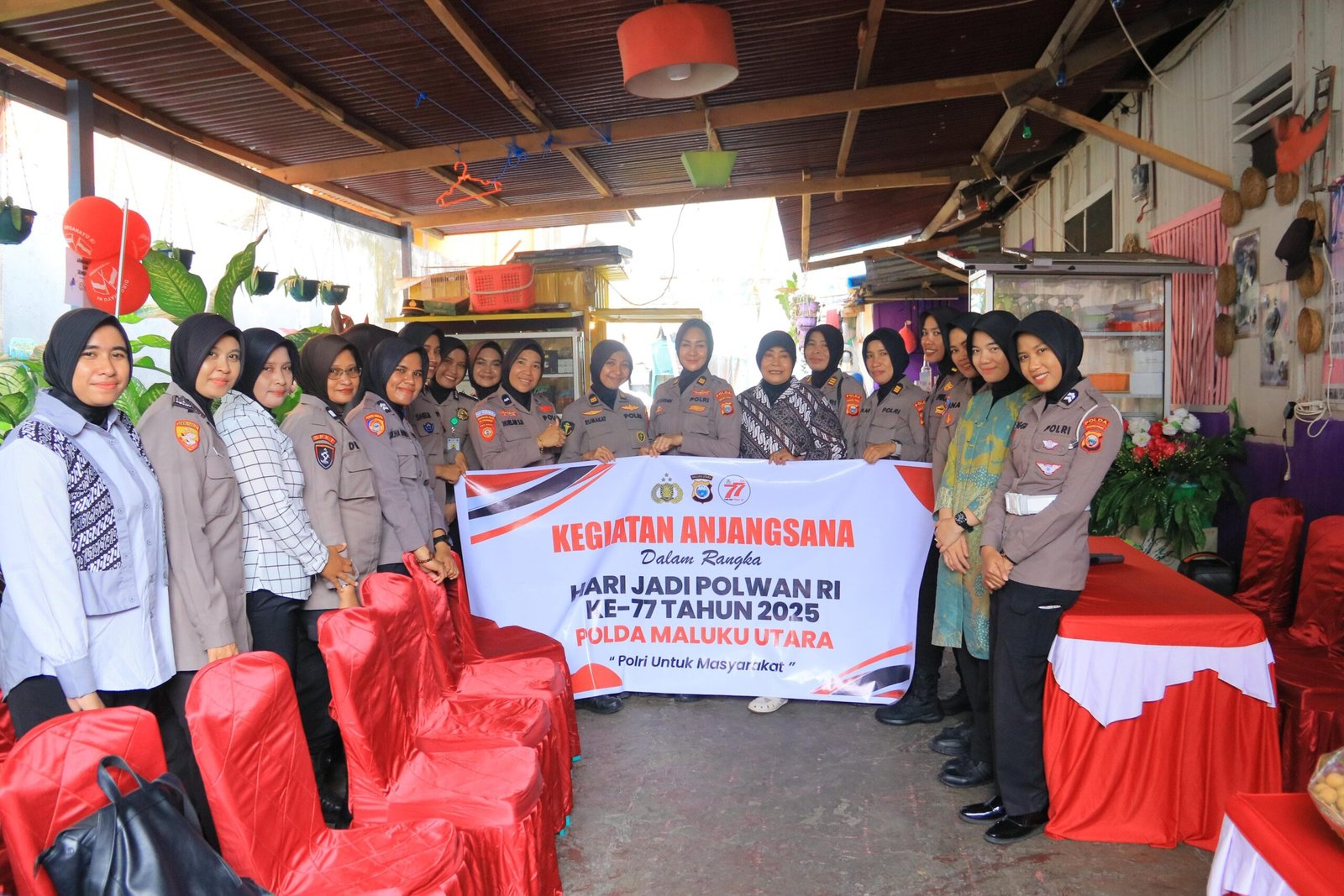 Hadir dalam kegiatan tersebut Ketua Pelaksana dan Wakil Ketua Pelaksana HUT Polwan, perwira Polwan Polda Malut, serta jajaran seksi anjangsana. Mereka secara langsung menyambangi kediaman AKBP (Purn) Ester Lefmanut dan Kompol (Purn) Rosita A. Rahman di Ternate serta AKBP (Purn) Ating di Tidore.