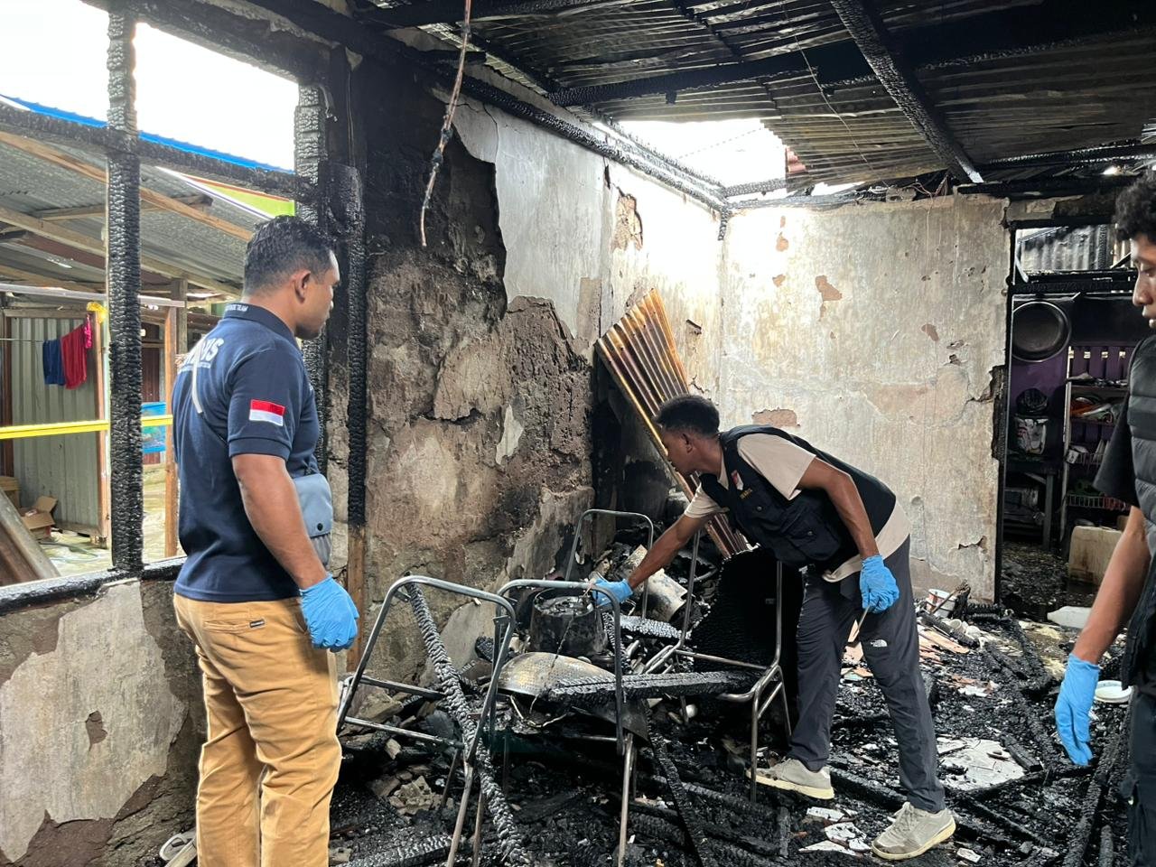 Kegiatan olah TKP tersebut dipimpin langsung oleh Kbo Reskrim IPDA Deni Wibowo, S.H bersama Anggota Ident dan Piket Reskrim. Kebakaran yang terjadi sekitar pukul 15.00 WIT itu menghanguskan sebagian besar bangunan rumah korban.
