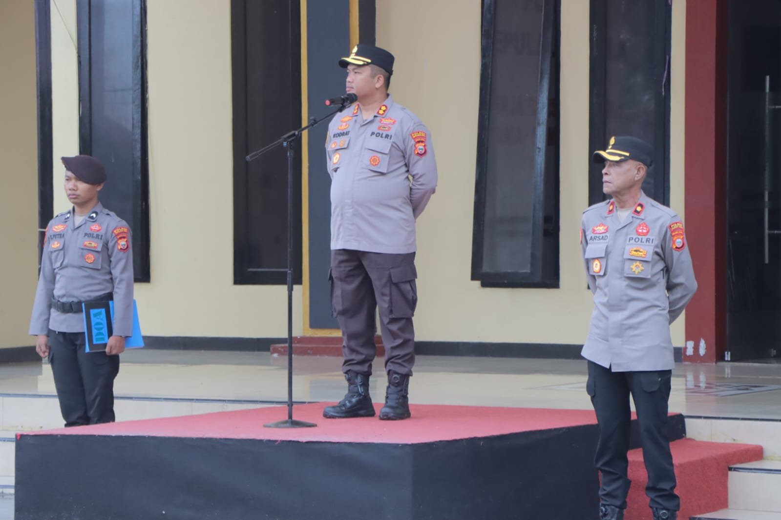 “Kapolres menegaskan seluruh personil agar menjaga integritas, meningkatkan etos kerja. Tetaplah menjunjung tinggi nilai-nilai profesionalisme dalam setiap pelaksanaan tugas,” Tegasnya.