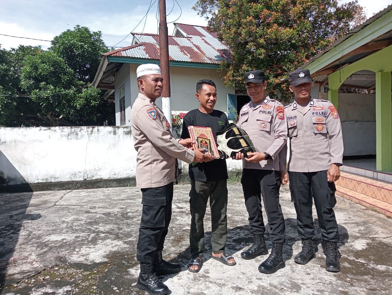 Humas Polres Sula- Sebagai bentuk kepedulian sosial, Satuan Pembinaan Masyarakat (Sat Binmas) menyalurkan bantuan Al-Qur’an dan sajadah ke masjid-masjid di seputaran Kota Sanana.