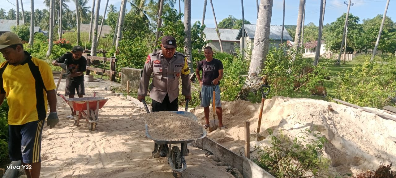 Dalam sela-sela kegiatan tersebut, AIPDA Sangadji tak hanya meninjau, tetapi juga turut membantu pekerjaan pembangunan jalan setapak bersama warga dan aparatur desa. Kebersamaan ini menunjukkan semangat gotong royong dan kedekatan antara polisi dan masyarakat.