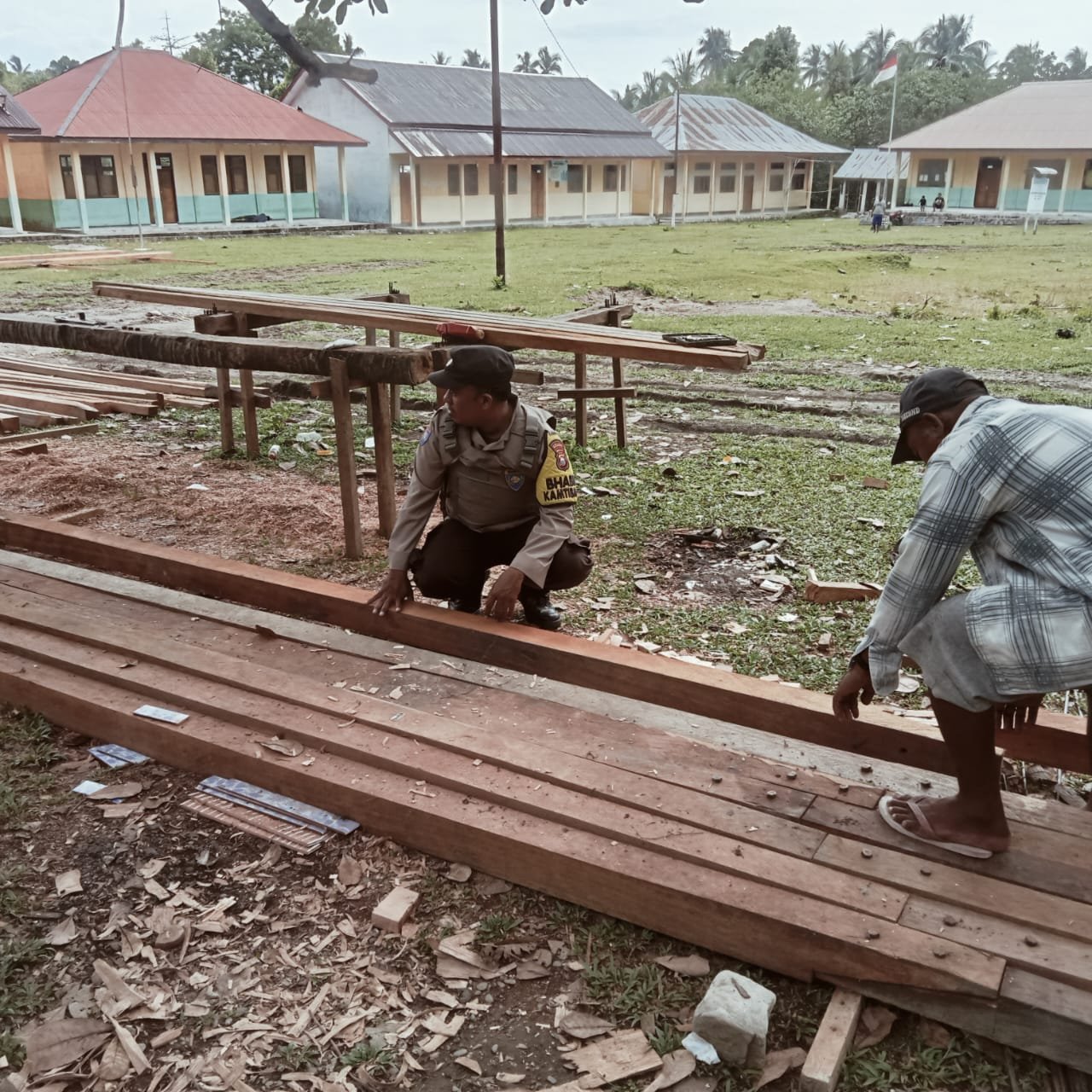 Dalam kegiatan tersebut, Bripka Armin Laiki turut serta membantu warga yang sedang bergotong royong membangun gedung Sekolah Menengah Umum (SMU) di Desa Ona. Kehadirannya disambut positif oleh warga setempat.