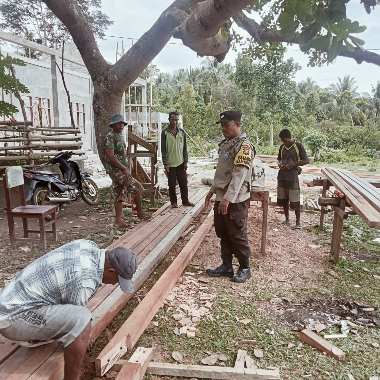 Dalam kegiatan tersebut, Bripka Armin Laiki turut serta membantu warga yang sedang bergotong royong membangun gedung Sekolah Menengah Umum (SMU) di Desa Ona. Kehadirannya disambut positif oleh warga setempat.
