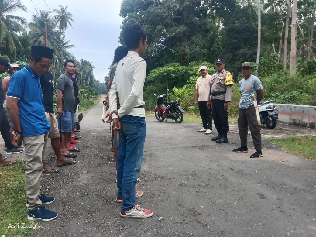 Kegiatan tersebut difokuskan pada pembersihan sepanjang jalan utama Desa Waigai, dengan melakukan pemangkasan rumput serta pemotongan dahan-dahan pohon yang mengganggu pandangan di tepi jalan. Suasana gotong royong tampak penuh semangat dan kebersamaan antara aparat kepolisian, perangkat desa, Linmas, serta warga setempat.