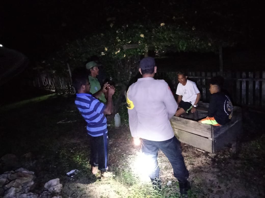 Humas Polres Sula- Guna mencegah dan meminimalisir gangguan Kamtibmas dan kriminalitas di tengah Masyarakat, Bhabinkamtibmas Desa Madapuhi Trans Aipda Irfan Umaternate bersama Linmas serta warga binaanya melaksanakan patroli malam diseputaran Desanya, Kecamatan Mangoli Utara. Jumat (25/4/25).