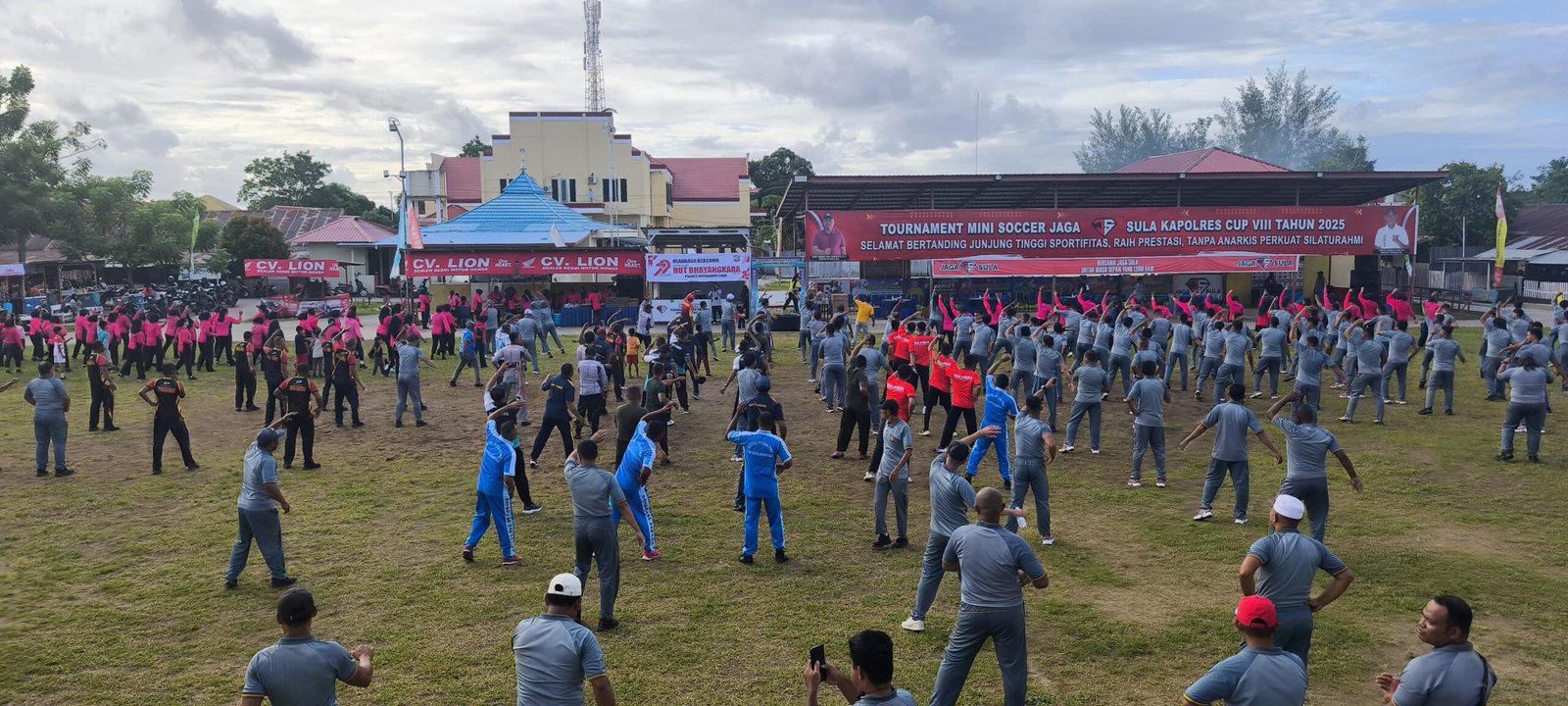 Humas Polres Sula-Dalam rangka menjalin silaturahmi, Kepolisian Resor Kepulauan Sula menggelar olahraga bersama instansi terkait yang dilaksanakan di lapangan bola Gelora Bhayangkara Kesatriaan mako Polres Sula, Selasa (17/6/2025).