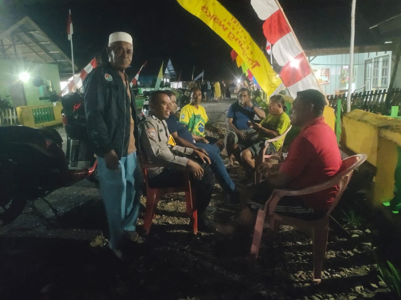 Humas Polres Sula- Guna mencegah dan meminimalisir gangguan Kamtibmas dan kriminalitas di tengah-tengah masyarakat, Bhabinkamtibmas Desa Kou Bripka Syahril Watiwa melaksanakan patroli malam diseputaran Desanya Kecamatan Mangoli Timur, Sabtu malam (16/8/25).