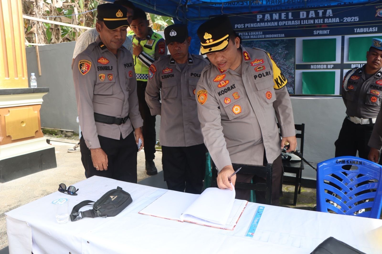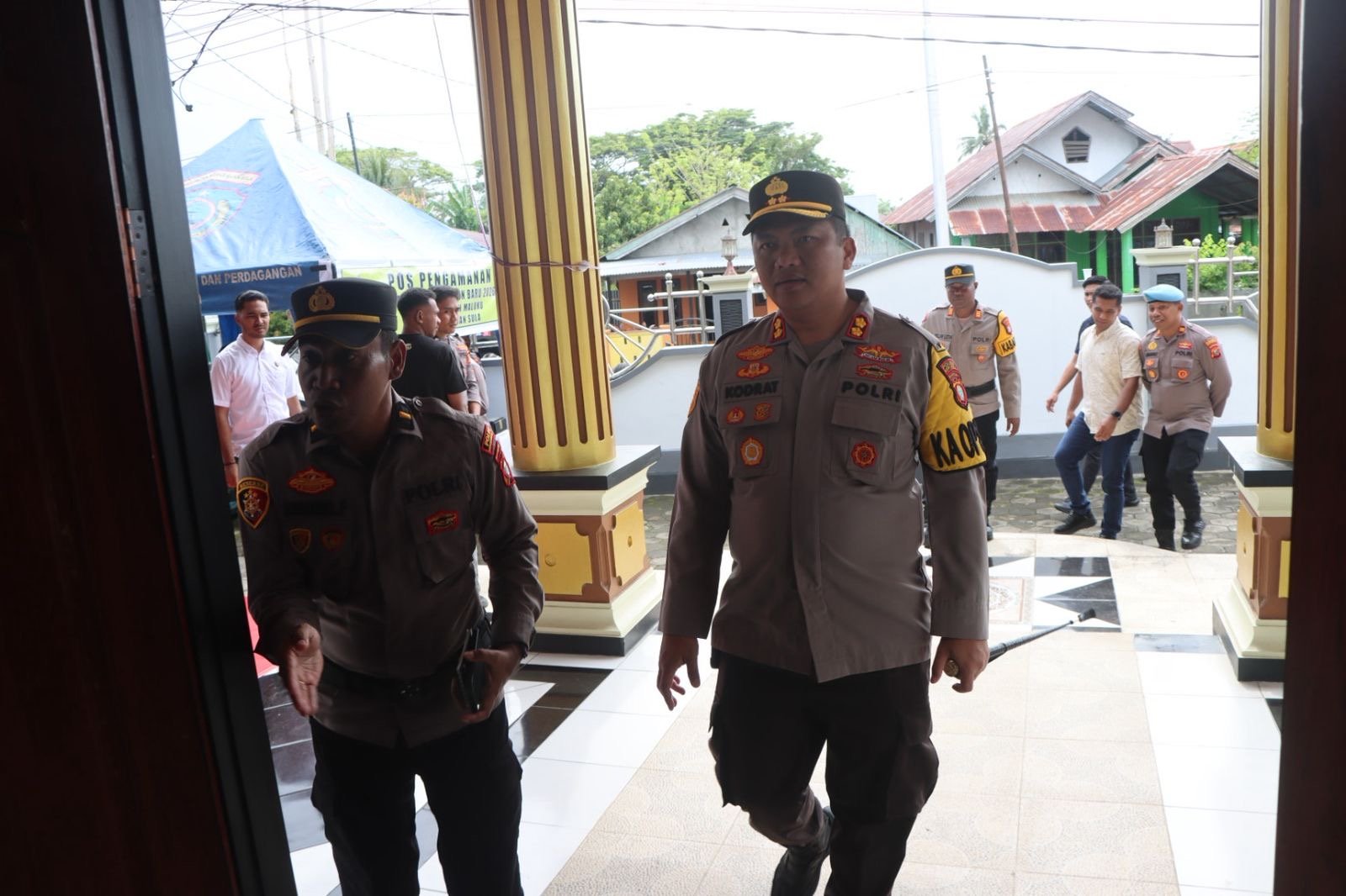HUMAS POLRES KEPULAUAN SULA — Kapolres Kepulauan Sula, AKBP Kodrat Muh Hartanto, S.I.K., bersama Pejabat Utama Polres Kepulauan Sula meninjau langsung kesiapan personel pengamanan dalam rangka Operasi Lilin Kie Raha pada pengamanan Natal 2025 dan Tahun Baru 2026, Selasa (23/25).