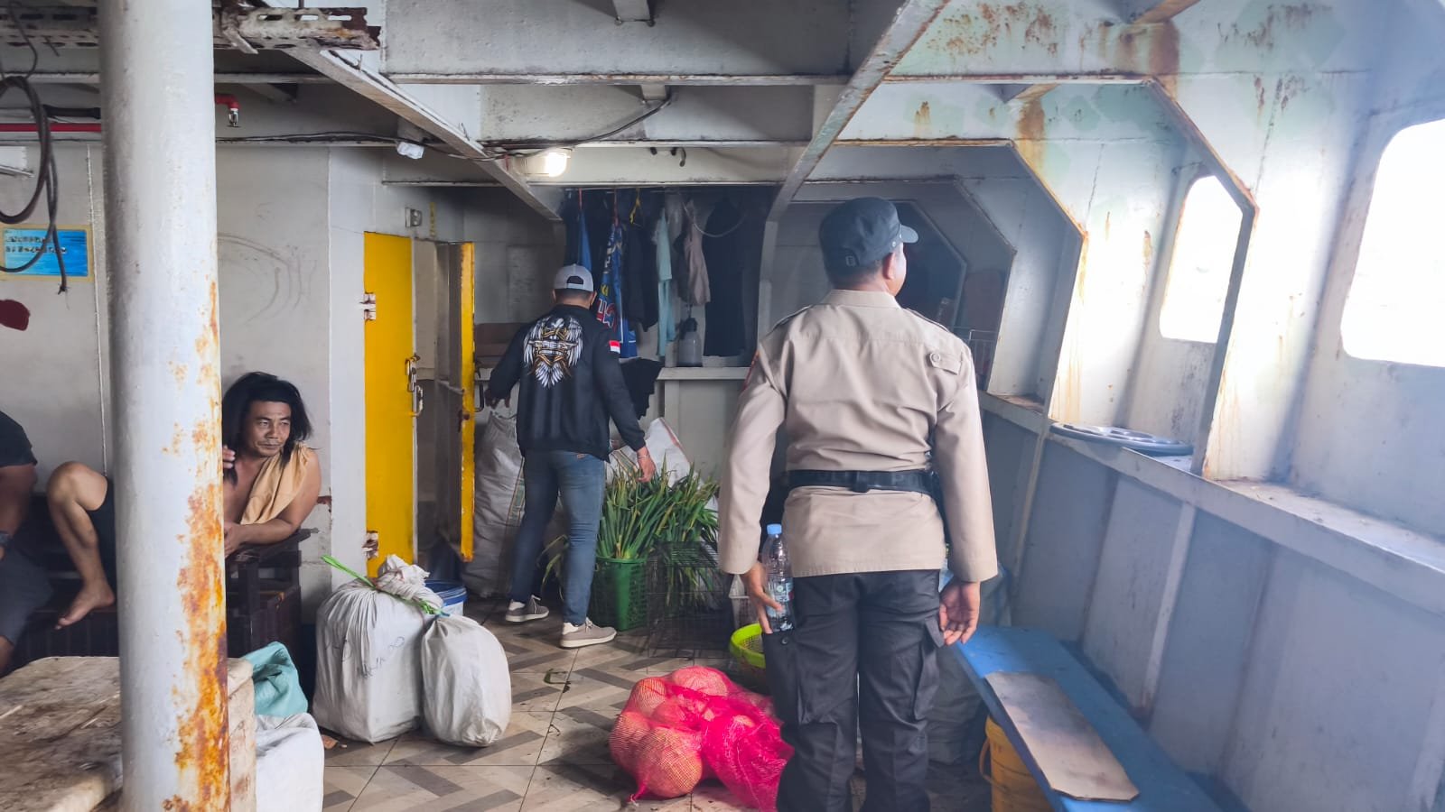 Dalam pelaksanaan pemeriksaan, petugas melakukan razia terhadap barang bawaan penumpang serta pemeriksaan di area dek kapal. Dari hasil pemeriksaan, petugas menemukan minuman keras jenis cap tikus yang dikemas dalam karton berisi 24 botol air mineral ukuran 600 ml yang ditinggalkan tanpa pemilik di dalam kapal.