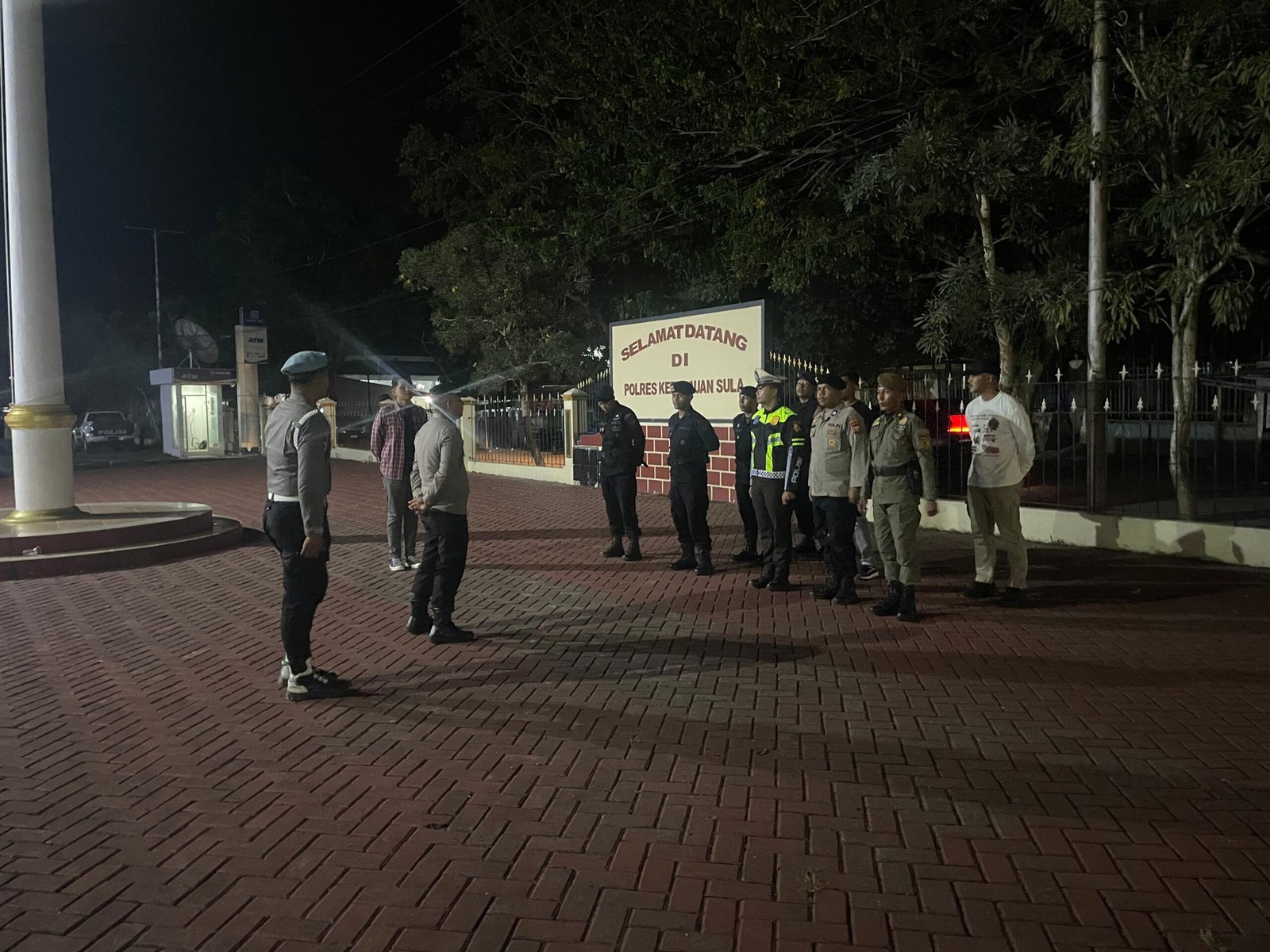 Humas Polres Sula – Dalam rangka menjaga situasi keamanan dan ketertiban masyarakat (Kamtibmas) agar tetap aman dan kondusif, Kepolisian Resor (Polres) Kepulauan Sula melaksanakan patroli gabungan bersama personel dari berbagai satuan fungsi dan instansi terkait, pada Sabtu malam (1/11).
