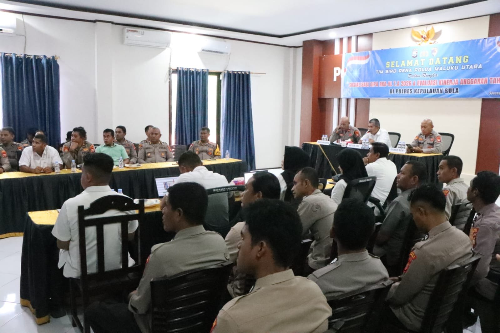 Kegiatan yang dimulai pukul 09.20 WIT tersebut dihadiri Wakapolres Kepulauan Sula, para Pejabat Utama Polres, para Kapolsek jajaran, para Kasi, serta para operator dan pengelola anggaran di lingkungan Polres Kepulauan Sula dan Polsek jajaran.