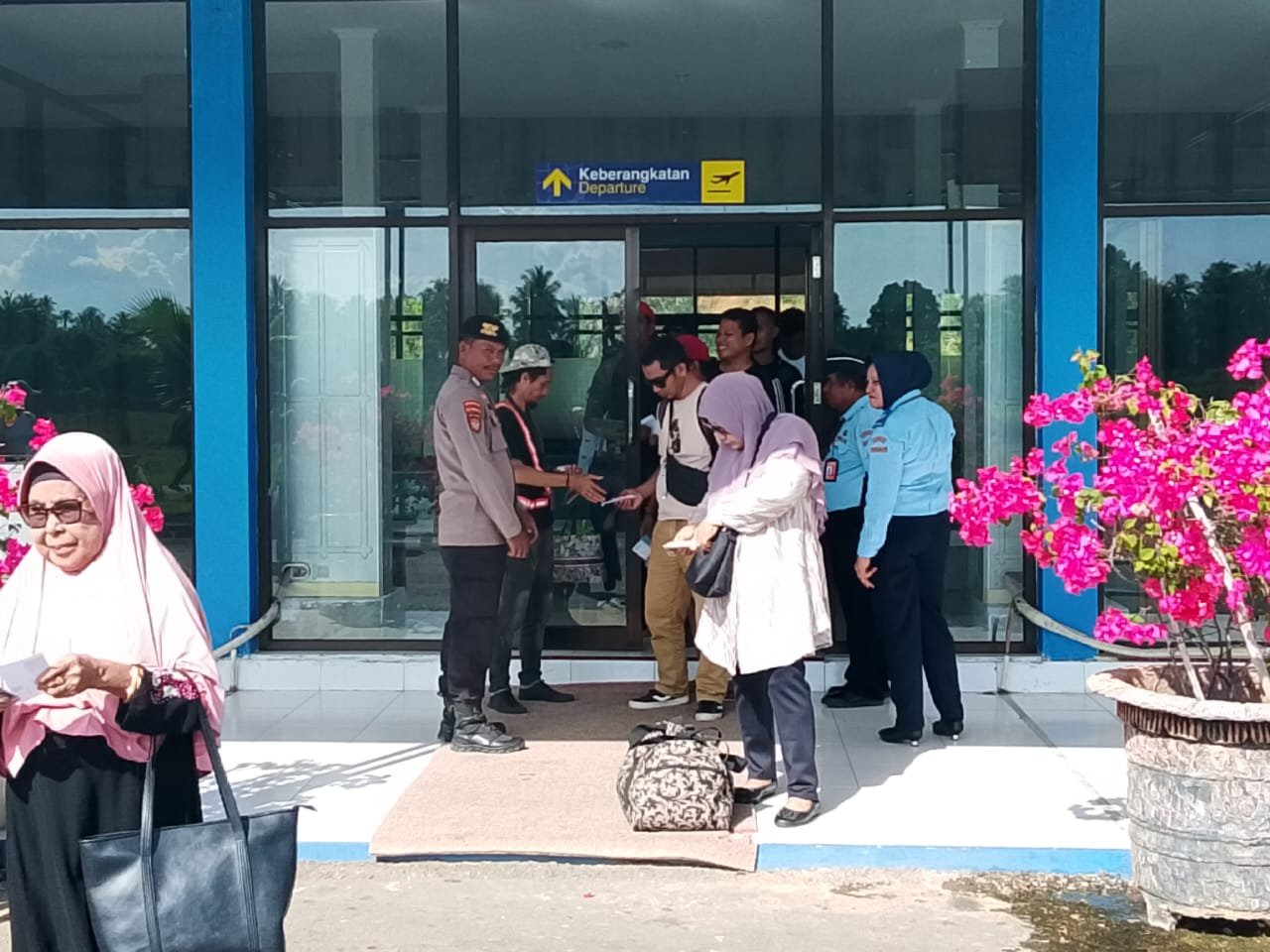 Personel Pos Pol melaksanakan monitoring dan pengamanan aktivitas penumpang di area terminal Bandara Udara Emalamo Sanana, guna memastikan situasi tetap aman, tertib, dan lancar. Pesawat Trigana Air tiba di Bandara Udara Emalamo Sanana dengan aman dan selamat.