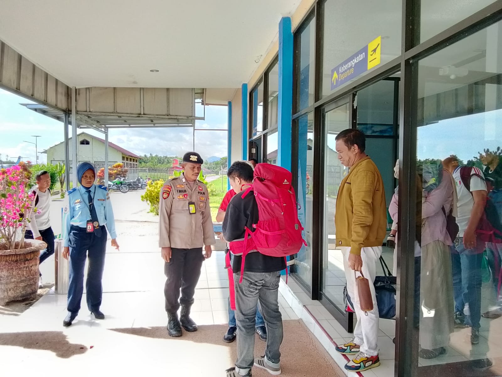 Personel Pos Pol kemudian melakukan pengamanan terhadap penumpang yang tiba di terminal kedatangan, serta melanjutkan pengamanan saat proses boarding penumpang tujuan Ambon guna memastikan seluruh rangkaian aktivitas penerbangan berjalan tertib dan lancar. Selanjutnya pesawat Trigana Air kembali lepas landas dari Bandara Emalamo Sanana menuju Ambon.