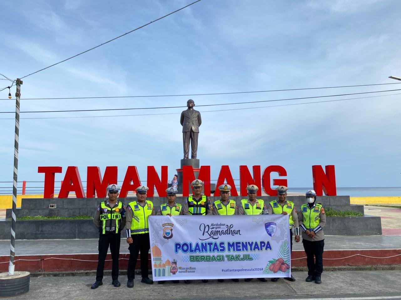 HUMAS POLRES SULA – Dalam rangka menjaga situasi keamanan, keselamatan, ketertiban, dan kelancaran lalu lintas selama bulan suci Ramadhan, Satuan Lalu Lintas (Sat Lantas) Polres Kepulauan Sula melaksanakan kegiatan Polantas Menyapa melalui aksi pembagian takjil kepada masyarakat pengguna jalan.