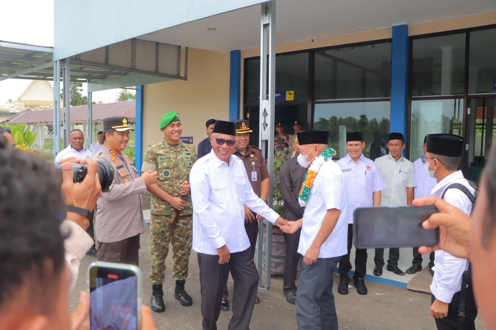 Wakil Gubernur Maluku Utara bersama rombongan tiba di Bandara Emalamo Sanana, Desa Waiipa, Kecamatan Sanana sekitar pukul 13.10 WIT dan disambut langsung oleh Wakil Bupati Kepulauan Sula Ir. H.M. Saleh Marasabessy, M.Si., Sekretaris Daerah Kabupaten Kepulauan Sula, unsur Forkopimda, serta pejabat daerah lainnya.