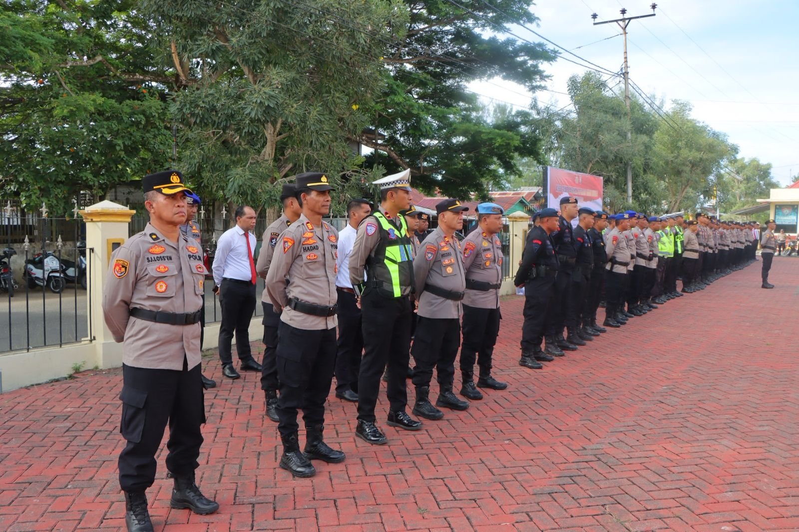 “Apel gelar pasukan ini merupakan wujud kesiapan kita dalam menghadapi berbagai potensi konflik sosial, sekaligus memastikan situasi kamtibmas tetap aman dan kondusif,” ujar AKBP Kodrat Muh. Hartanto.