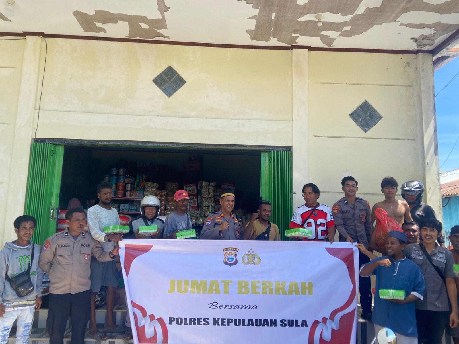 HUMAS POLRES SULA — Sebagai bentuk kepedulian sosial dan komitmen mempererat hubungan dengan masyarakat, Polres Kepulauan Sula melaksanakan kegiatan Jumat Berkah bertempat di area pertokoan Desa Fagudu, Kecamatan Sanana, pada Jumat (14/11)
