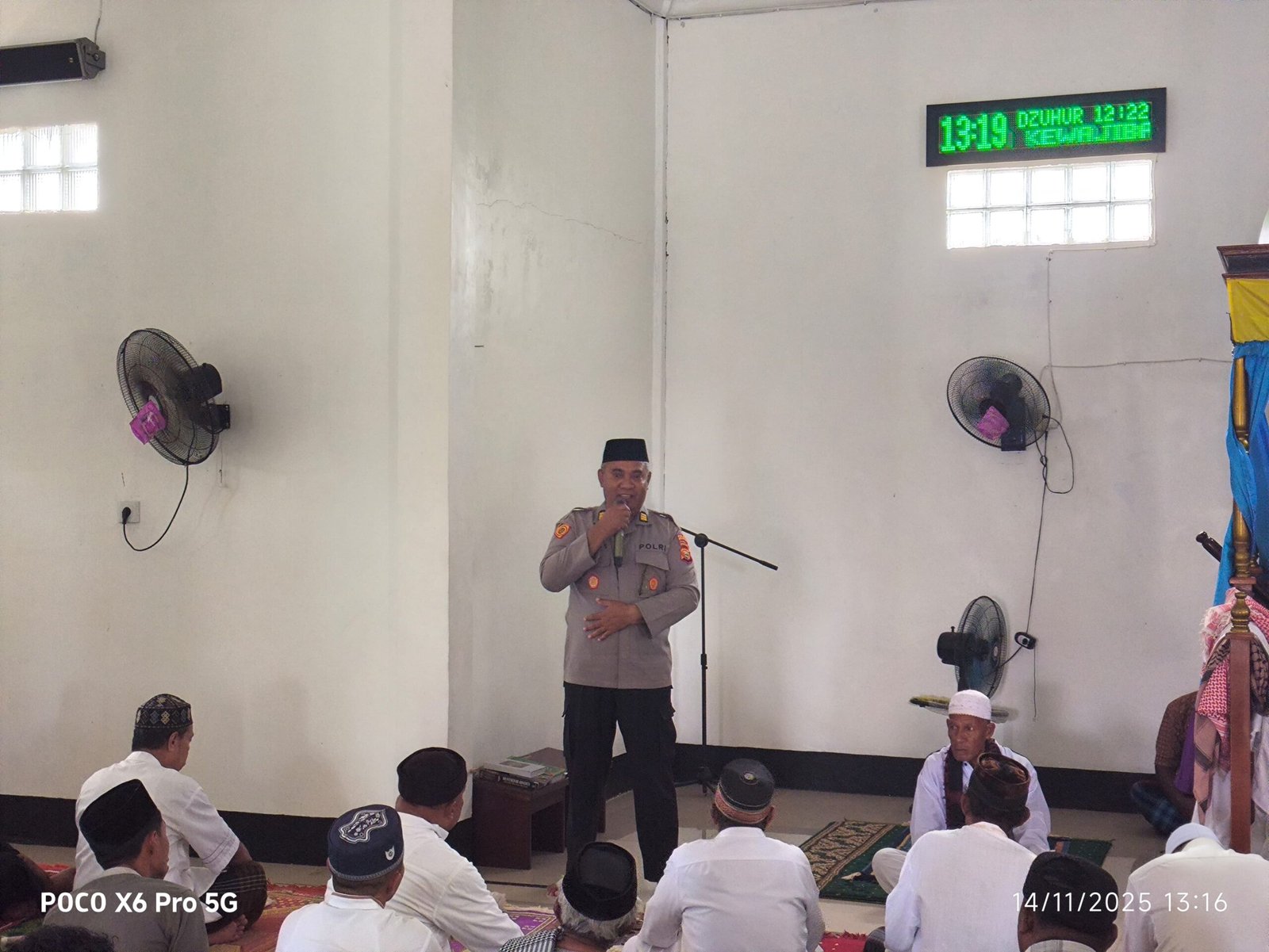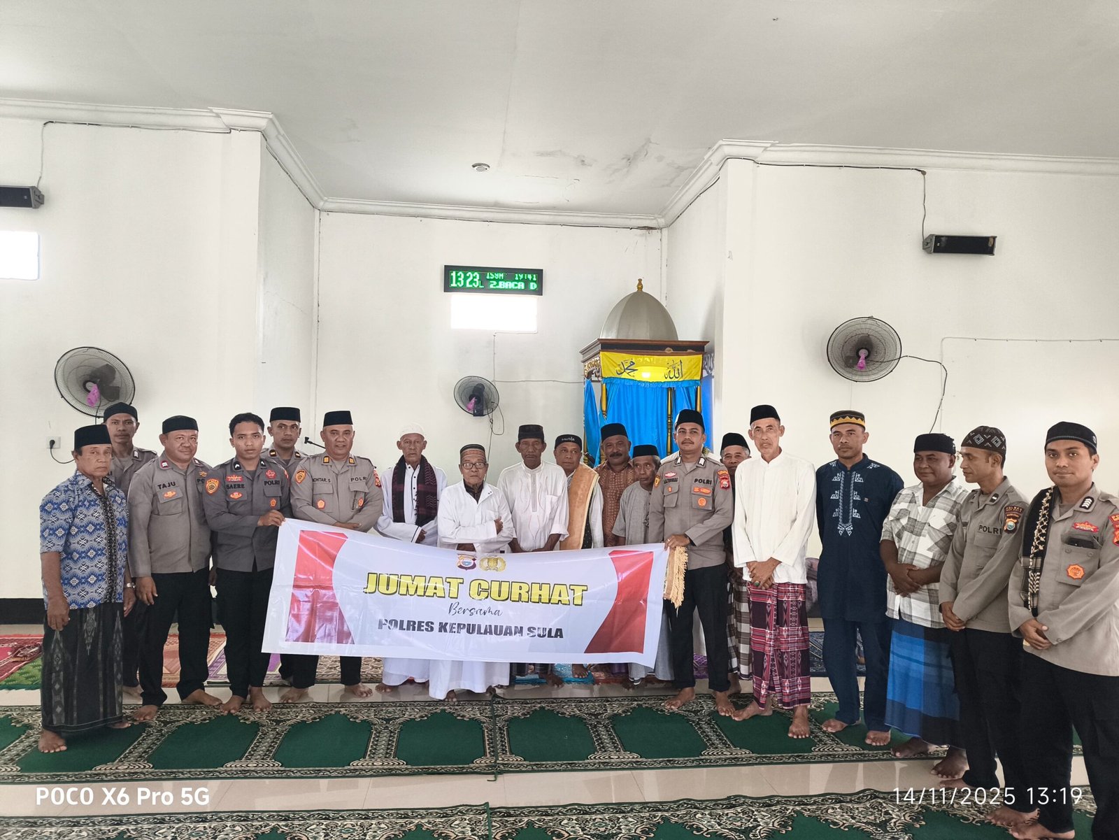 HUMAS POLRES SULA — Polres Kepulauan Sula kembali menggelar kegiatan Jumat Curhat sebagai upaya mempererat silaturahmi dan menyerap aspirasi masyarakat terkait situasi keamanan dan ketertiban di wilayah setempat. Kegiatan ini berlangsung pada Jumat (14/25) di Masjid Al-Iqra Desa Waihama, Kecamatan Sanana.