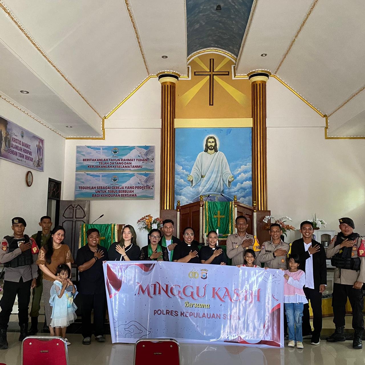 Kegiatan yang dipimpin langsung oleh Pamapta Ipda Arif Supriyanto, dan sejumlah, personel Polres Kepulauan Sula, serta para jemaat Gereja Bethel.