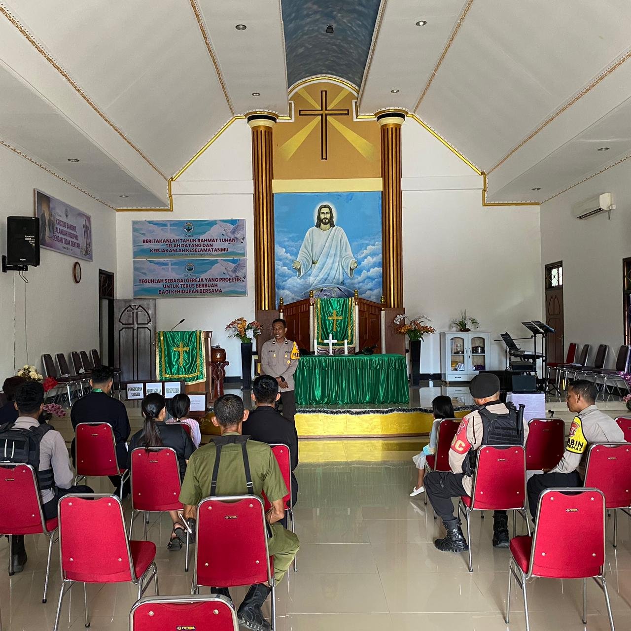 Selain berdialog dan menyampaikan pesan-pesan kamtibmas, kegiatan juga diisi dengan doa bersama dan pemberian tali asih kepada pihak gereja dan jemaat sebagai wujud kepedulian sosial Polres Kepulauan Sula.