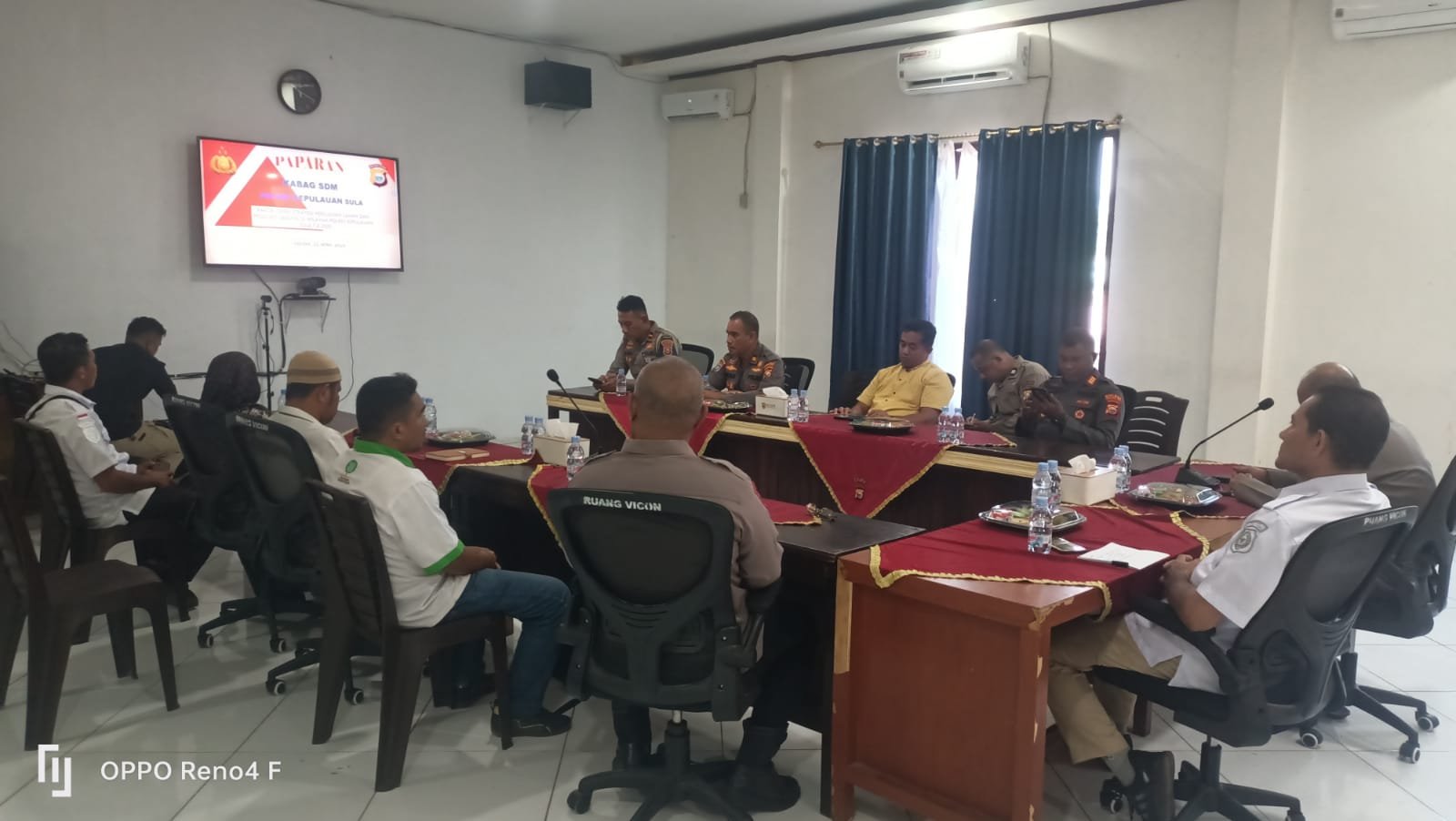 Rapat dipimpin oleh Wakapolres Kepulauan Sula, KOMPOL Arsad Alinoh, S.H., dan dihadiri oleh sejumlah pejabat dari instansi terkait, antara lain perwakilan UPTD KPH Provinsi Maluku Utara, Dinas Ketahanan Pangan, Dinas Pertanian, serta Dinas Perindagkop Kabupaten Kepulauan Sula, serta para pejabat utama Polres Kepulauan Sula.