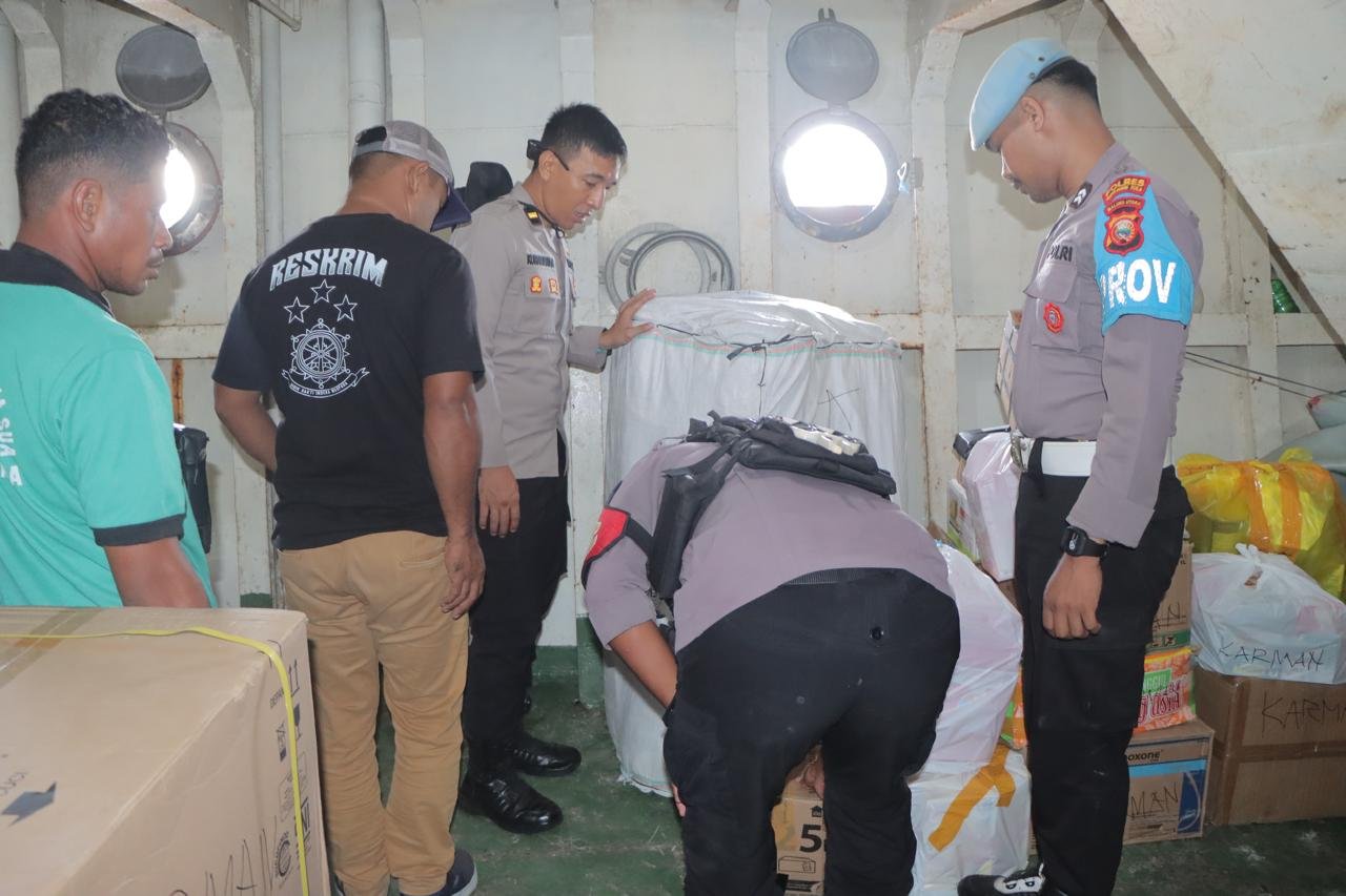 Humas Polres Sula – Dalam rangka menjaga keamanan dan ketertiban, Tim operasi mandiri kewilayaan premanisme Kieraha bersama Sat Samapta Polres Sula melakukan razia Minuman keras (miras) di kapal penumpang Uki Raya yang bersandar di Pelabuhan Regional Sanana, pada Sabtu (03/05/2025).