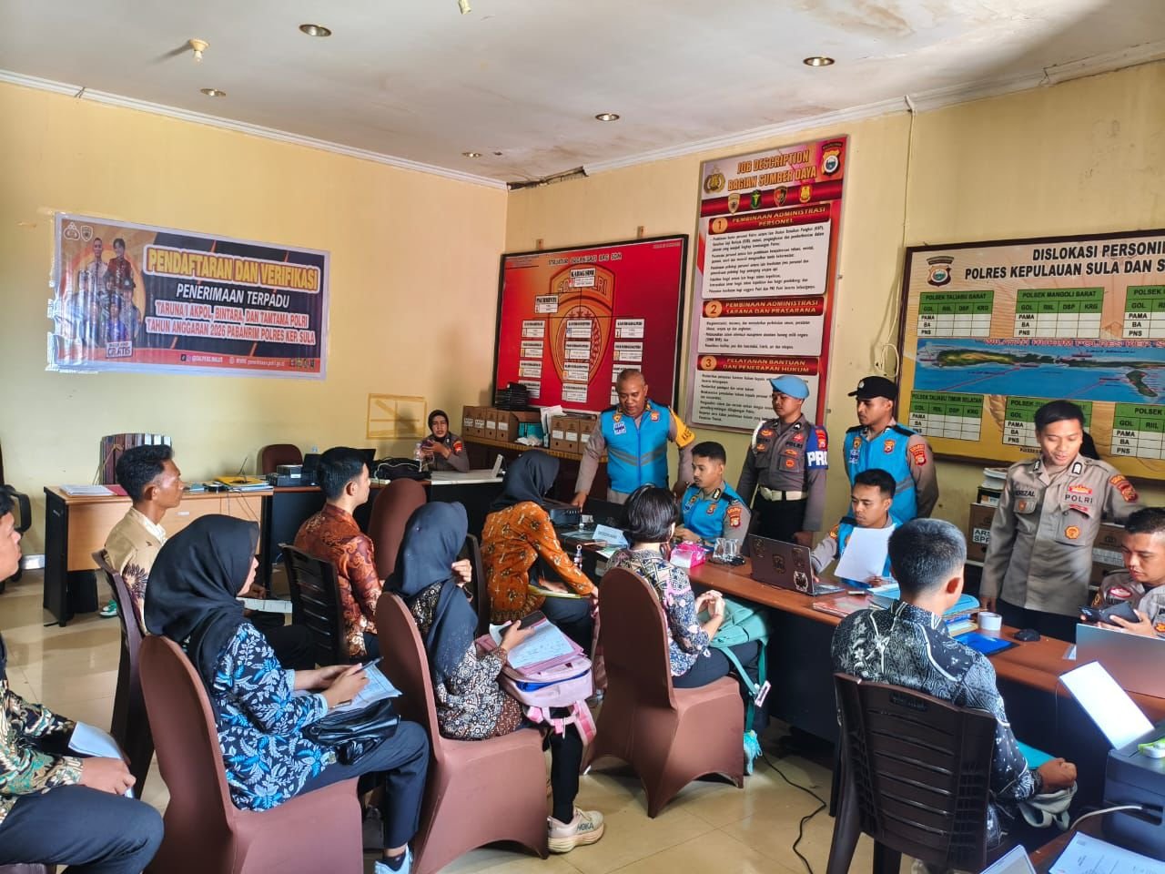 Kabag SDM Polres Kepulauan Sula AKP Mochtar Saniapon menyampaikan bahwa proses verifikasi ini merupakan tahapan awal dalam memastikan kelengkapan administrasi para calon peserta sebelum mengikuti seleksi selanjutnya.