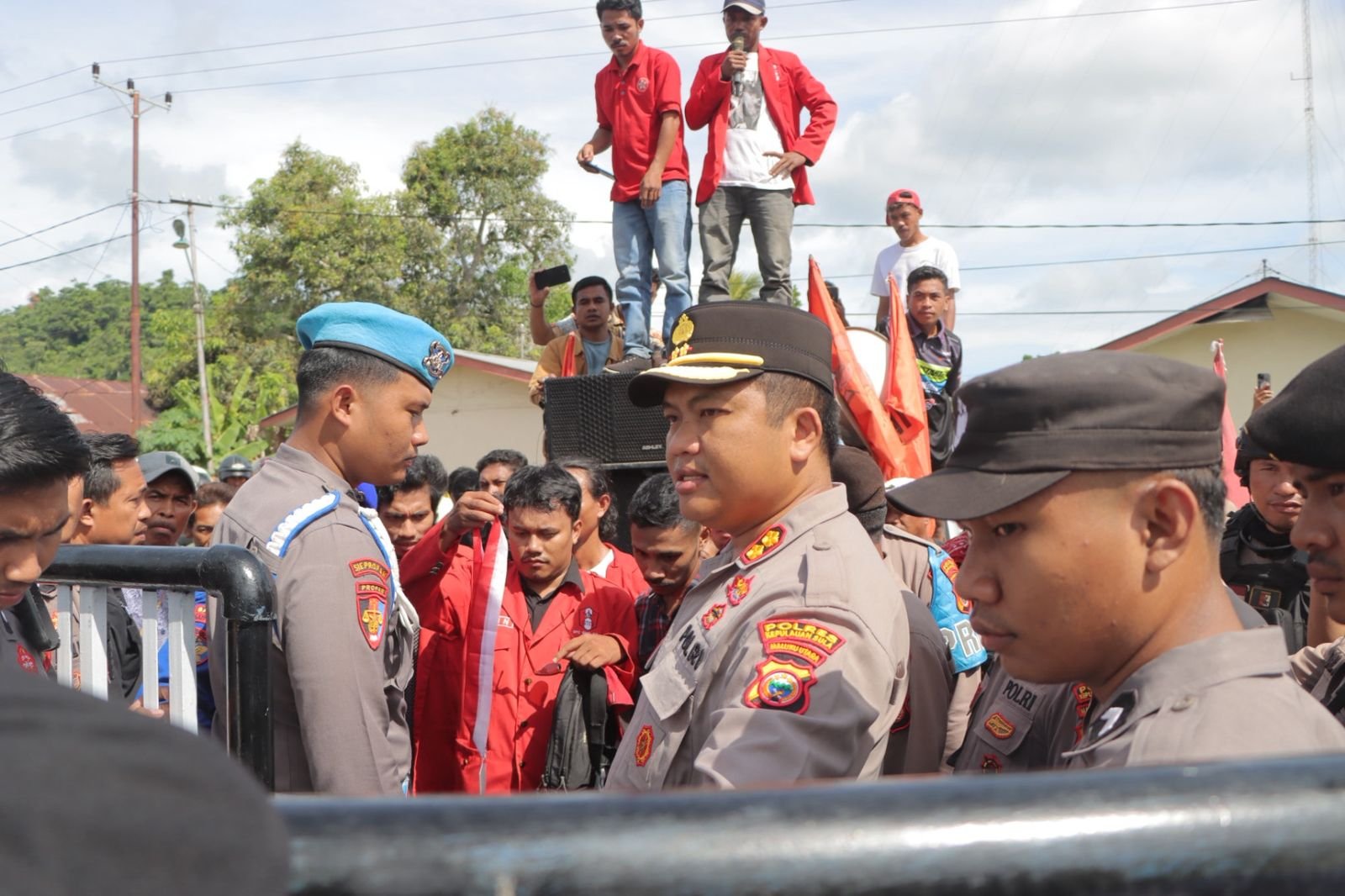 Kapolres Kepulauan Sula AKBP Kodrat Muh Hartanto, S.I.K. Mengawal langsung proses pengamanan di dua titik aksi.
